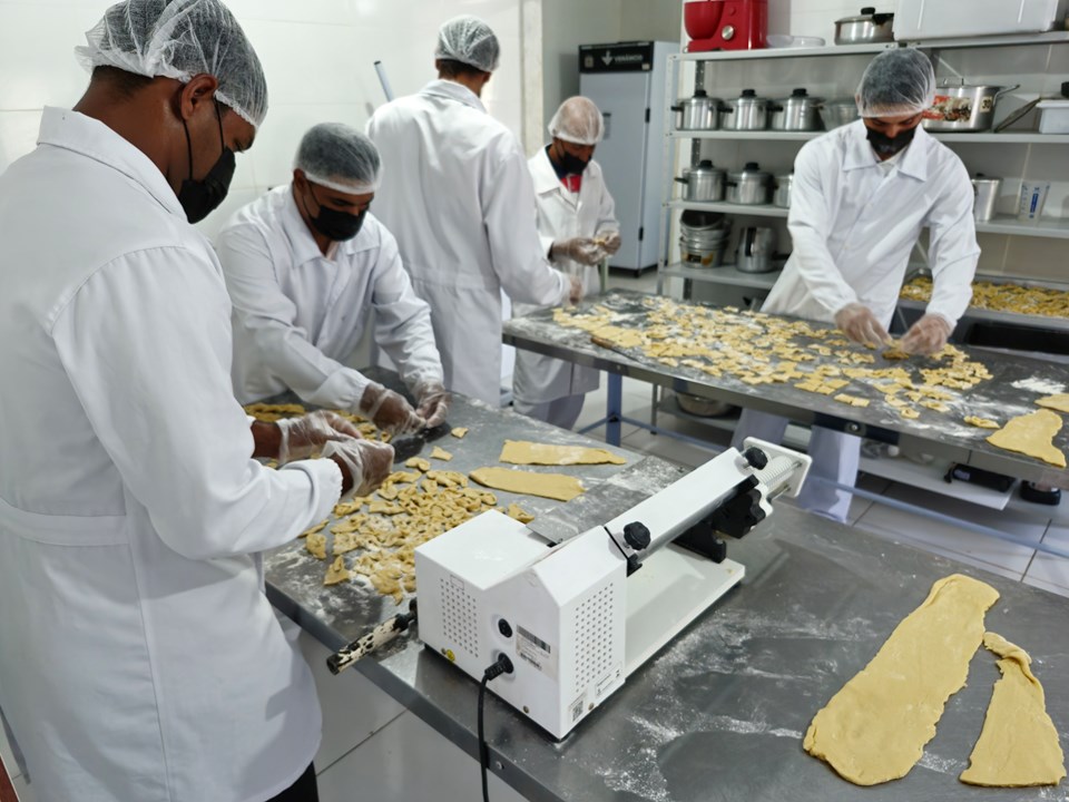 Toda semana, 10 acolhidos têm a oportunidade de aprender novas receitas de bolos, pães, biscoitos e salgados com a instrutora do curso. Após criar e inovar na padaria, os alimentos são consumidos, principalmente, pelos familiares em dias de visitas.